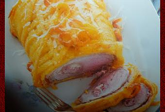 elegante e scenografico l'arrosto di maiale di questa ricetta è avvolto in una crosta di tagliatelle all'uovo che lo rende veramente originale