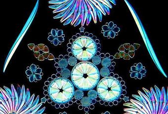 Dal momento che la creatività opera tramite vie strane, in qualunque campo individui dotati di particolare sensibilità possono esprimere la propria arte. Fu così che il professor Klaus Kemp, nato a Berlino e trasferitosi in UK nel 1948, mentre stava studiando questi microscopici esseri, notò l’infinita complessità di diverse forme che potevano assumere. Da questa osservazione al mettersi a disporre le micro-alghe in complicati pattern il passo è stato breve e dopo decadi di ricerche su materiali e tecniche le composizioni di Kemp hanno raggiunto un risultato spettacolare. Per quanto sembri un tipo di espressione artistica innovativo, sondando il web alla ricerca di succosi dettagli si scopre che in realtà già nell’epoca Vittoriana la pratica di disporre diatomee in intricate fantasie era prassi tra gli scienziati più eclettici. Mi piace notare come la nostra ricerca della bellezza si annidi anche nei luoghi più inaspettati, pronta a scoprire nuove realtà e a interpretarle in nuove forme.