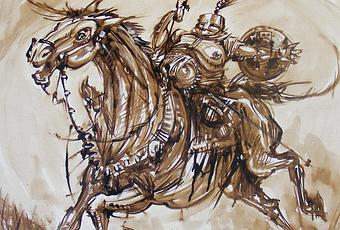 © Turcopolo in carica: Andrea De Simeis (2009, tela misto cotone, 80 x 70 cm, bitume giudaico)