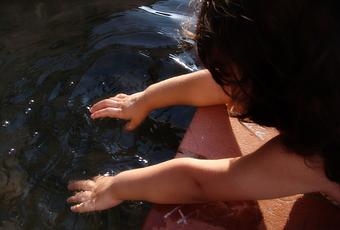 Intando giochiamo a schizzarci con l'acqua delle fontane.