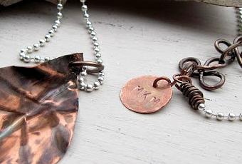 e così giocando un po' con la lastrina di rame è nata questa foglia, un po' irregolare...