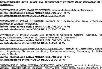 Il bollettino, relativo alla provincia di COSENZA, fornisce informazioni sullo stato delle infestazioni dei parassiti dell'olivo e dispensa consigli fitopatologici sulla scorta delle osservazioni effettuate nelle aziende monitorate.