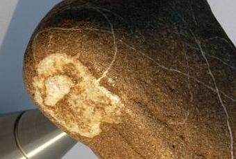 Il sasso ha una vita lunga e intensa. Già non si ricorda più la sua remotissima genesi, sotto l’influsso di forze primordiali che innalzavano i sedimenti del mare verso il cielo. Poi il riposo senza tempo nel ventre silenzioso e buio della montagna. Ma esisteva un vivido mondo esterno, dove l’acqua e il ghiaccio, il calore e il gelo modellavano e incidevano senza sosta i pendii e gli avvallamenti. Fino a quando, goccia a goccia, raggio dopo raggio, questo mondo esterno raggiungeva l’esterno, liberandolo alla corsa strofinata lungo torrenti prima ripidi ed esuberanti, poi orizzontali e quieti, in infiniti rami verso il lontanissimo mare. Sopra, l’azzurro del cielo, il buio della notte, i disegni cangianti delle nuvole, le imprevedibili riflessioni della luce. Texture e colori raccontano questo lunghissimo percorso, come identità genetica di unicità irripetibili. Il cono di fissaggio, finemente tornito in acciaio inossidabile, ostende nello spazio la forma, densa di segni, colori e peculiarità epidermiche.