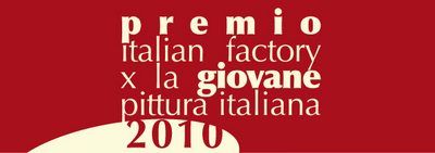 Dopo il successo delle prime tre edizioni, Italian Factory è lieta di inaugurare la mostra collettiva dei finalisti della IV edizione del Premio Italian Factory per la giovane pittura italiana 2010, riservato ad artisti under 30 e da me curato.L'edizione 2010 ha moltiplicato le opportunità per i giovani artisti che si affacciano al mondo dell'arte; oltre al premio-acquisto in denaro per l'artista vincitore e il suo conseguente ingresso nella "squadra"di Italian Factory, sono state indette due prestigiose borse di studio: a Berlino nel vivace centro culturale GlogauAIR e a Cuba nell'ambito del Festival Arte Mas a La Habana, organizzato dall'associazione culturale CubeArtI finalisti di questa edizione sono: Matteo Antonini, Elena Ascari, Alice Olimpia Attanasio, Cristiano Carotti, Marco Cassarà, Rudy Cremonini, Marco Demis, Daniele Duò, Alexandru Folla, Riccardo Gavazzi, Ester Grossi, Agnese Guido, Andrea La Rocca, Claudia Marini, Silvia Mei, Ieva Petersone, Giacomo Podestà, Maria Giorgia Ramunni, Fabio Roncato, Miriam Secco, Stefano Spera, Giulio Zanet.Le opere degli artisti selezionati verranno esposte a Roma alla First Gallery dal 15 dicembre 2010 al 15 gennaio 2011. L'inaugurazione della mostra e la proclamazione dei vincitori si terrà mercoledì 15 dicembre 2010, dalle ore 18.30.Lo staff di Italian Factory con la collaborazione di Ana Pedroso - rappresentante dell'Associazione CubeArt e ideatrice di Contemporanea Cuba - ha designatoMiriam Secco a partecipare al Festival ArteMas a La Habana (Cuba)dal 27 novembre al 5 dicembre 2010.La giuria che nominerà il vincitore del Premio Italian Factory per la giovane pittura italiana 2010, sarà costituita da Chiara Canali (curatore del Premio Italian Factory), Luca Beatrice (critico d'arte), Gaetano Cappelli (scrittore), Angelo Crespi (consigliere Ministero dei Beni Culturali), Peter Glidewell (antropologo), Irene Pascual (direttrice GlogauAIR, Berlino), Giorgio Ortona (artista).La borsa di studio per un programma di residenza di due mesi presso il centro culturale GlogauAIR a Berlino verrà assegnata durante la serata inaugurale.