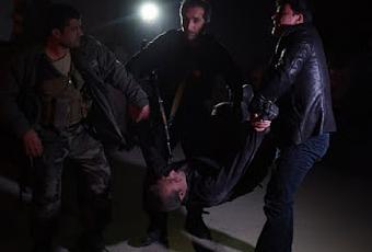 Forze di sicurezza afghane trasportano un uomo ferito sul luogo dell'attentato. Credit: Shah MaraiAlcuni uomini armati hanno compiuto un attentato nei pressi dell'ambasciata spagnola a Kabul, in Afghanistan.
