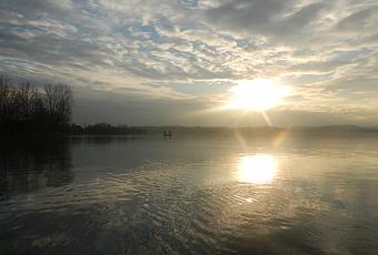Molti i pescatori in giro per il lago, molti ahimé con il morto manovrato o forse addirittura con il vivo, molti carpisti appostati a riva con le esche a fondo in mezzo al lago, molte pizzette mangiate da Frank e molti lussuosi panini “custom made” per me, qualche sorso di whisky, ma in sintesi nessuna altra emozione in canna, solo la grande emozione di vivere una pace assoluta nella magia del lago, godersi la compagnia di un amico, la speranza appesa al filo della lenza e lo scorrere quieto delle ore fino a quando il sole ha iniziato ad essere basso sull’orizzonte e la magia dell’ultima ora a dipingere tutto di tinte fiabesche e fiammeggianti.
