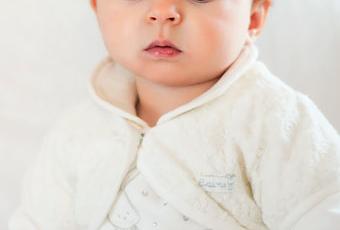 Fotografare i bambini mi piace tantissimo.Sono, però, un soggetto difficile, hanno una bassa soglia di concentrazione e di attenzione e si annoiano facilmente.Fino ad ora non ero mai scesa sotto i due-tre anni di età ma questa volta mi sono cimentata con una piccolissima, appena sette mesi.Avevo già fotografato il suo battesimo ma non era stato così soddisfacente.Tanti bambini, chiesa molto grande, confusione...impersonalità e poca possibilità di mettermi davvero in contatto con il mio piccolo soggetto.Stavolta il servizio fotografico, che comprende tante tante altre fotografie, è stato realizzato nel mio salotto,in modo semplice e praticamente improvvisato.Una Canon 600D, un obiettivo fisso 50 mm con apertura f 1,8 e un pannello riflettente artigianale, un vassoio sottotorta argentato che la mamma della piccola direzionava secondo le mie indicazioni.Più semplice di così...ma quanto mi sono divertita!