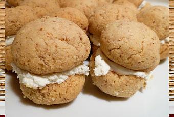 Prendere il grana, il burro a cubetti, la farina e il vino e impastarli con un robot (o a mano); poi quando abbiamo ottenuto un impasto omogeneo bisogna dividerlo in circa 40 palline regolari che adagiamo su un tegame coperto da carta forno e facciamo cuocere in forno a 180° per 20 minuti. Poi lasciare raffreddare. Nel frattempo prepariamo la farcitura unendo i formaggini e il gorgonzola con aggiunta di una spolverata di noce moscata. Mettere la crema in una sac à poche, prendere due biscotti di pasta salati e unirli con la crema di formaggio fino a esaurimento dei biscotti. Sono ottimi per l'aperitivo.