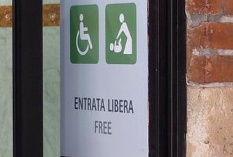 Il Bagno pubblico accessibile a Cortile Mercato Vecchio (comodo se si è in Piazza Erbe o Piazza dei Signori dove non ci sono locali con bagni accessibili) rende ora più chiara l'entrata gratuita per persone con disabilità e genitori che devono usare il fasciatoio: la segnaletica aiuta sempre!