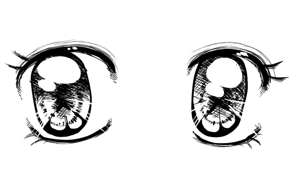 Che dire sono fissato con lo stile singolare,mi piace se qualcuno guarda il mio stile é riesce a riconoscerlo tra tanti,distinguerlo sopratutto per lo shojo a differenza dello shonen é molto difficile distinguerlo sopratutto per chi é all'inizio,anche perché gli occhi sembrano tutti uguali o quasi. Ho dedicato molto tempo a realizzarlo se li capovolgete potete anche vedere un cuore al loro interno e quella sara' la parte chiara dell'occhio. Infine ho provato ad inchiostralo aggiungendo capelli e viso molto velocemente,anche i capelli sono un esperimento voglio imparare fare i capelli neri con le lucidature.