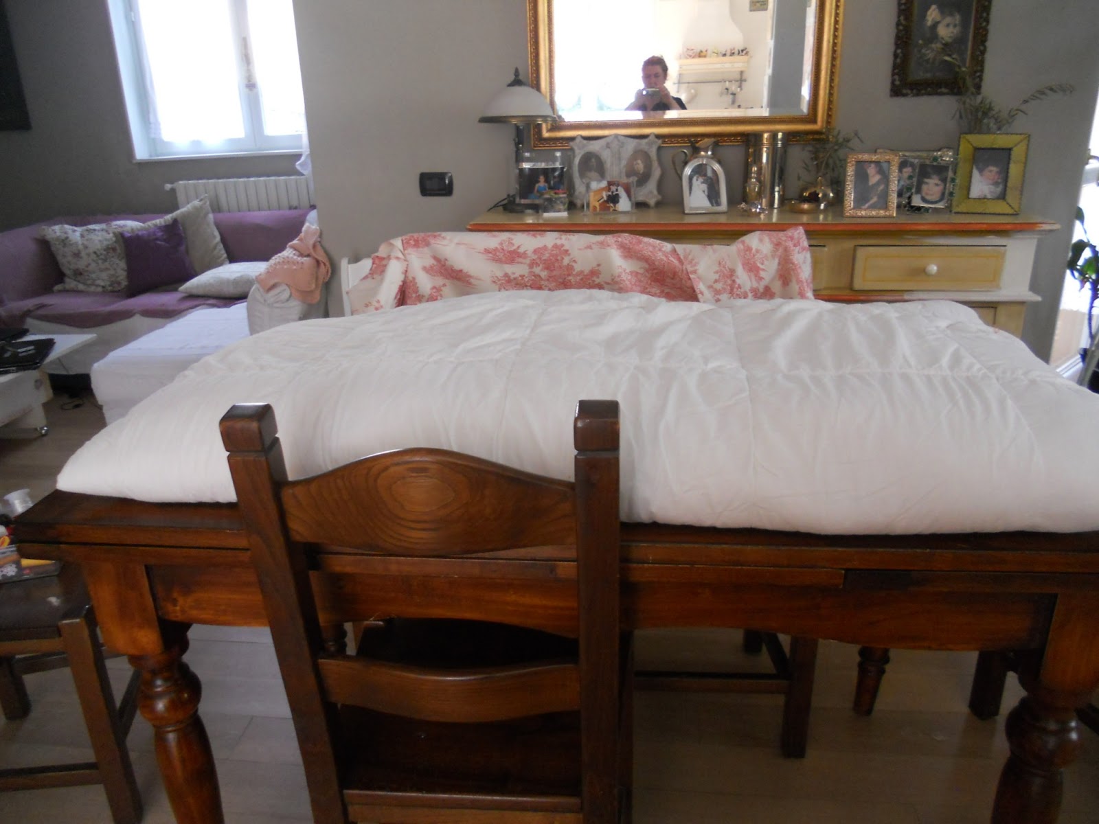 Io faccio paura dalla bruttezza,soprattutto in confronto a luima pazienza.Invece, ho cercato ovunque in internet,ma non ho trovato nessuna altra immagine di queste panche, per realizzare la mia non ho potuto copiare che l'idea .Per prima cosa ho dovuto concentrarmi sul materiale, non tutti i pallets vanno bene,il legno deve essere in ottimo stato,anche se si carteggiano con la levigatrice,molte sono le parti metalliche che impediscono di arrivare dappertutto,meglio se hanno bisogno solo di una levigatina leggera.poi devono avere le doghe molto vicine l'una all'altra per garantire maggiore stabilità.La ricerca non è stata semplice ma con l'aiuto di un amico ho trovato proprio quello che ci voleva.Poi naturalmente il mio divanetto doveva essere shabby, quindi necessitava di un rivestimento di cuscini romanticissimo