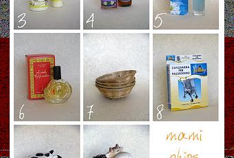 1 - coppia di bicchierini da caffè segafredo (nuovi)2 - portachiavi maialino in legno e cuoio (nuovo)3 - crema corpo e crema viso meringa e limone (nuovi)4 - eau de toilette e bagnoschiuma vaniglia e mora (nuovi)5 - eau de toilette rilassante (nuovo)6 - eau de toilette Lady Paris (nuovo)7 - 4 cestini in vimini naturale diemetro 15 cm (nuovi)8 - zanzariera per passeggino (nuova)9 - MUKKA express per cappuccino (usata 1 volta)10 - mucca in terracotta (se volete il n° 9 vi prendete anche questa ;-)11 - set di 2 porta tovagliolo con corona (nuovi)12 - casetta in cera d'api (nuova)