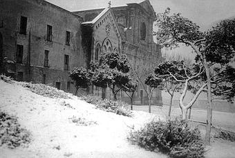 Le bellissime immagini della basilica di N.S. di Bonaria sotto la neve negli anni trenta e ai giorni nostri.