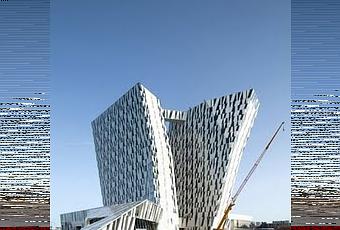 La volontà dei progettisti (3XN Architects) era quella di non dare l'impressione che l'edificio fosse un albergo, per questo hanno utilizzato come riferimenti più le case che le strutture alberghiere, soprattutto dal punto di vista dei materiali.Per questo nelle 814 stanze Bella sky Hotel a Copenhagen sono stati utilizzati tappeti di lana, legno di castano e pelle per le rifiniture, seguendo il gusto tipico del design nordico.Dal punto di vista architettonico, i due grattacieli, collegati a terra e tramite un ponte sospeso si piegano come a volersi staccare l'uno dall'altro. Entrambi i corpi sono trattati con un pattern di trexture molto particolare, che ritma le facciate e ne distingue le aperture.
