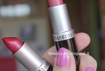 Voglio parlarvi di due rossetti che mi stanno piacendo molto....sono della marca Benecos, azienda ecobio e lowcost, che si trova online su molti siti specializzati di makeup ecobio (io ad esempio li ho acquistati su EccoVerde; i rossetti di cui voglio parlarvi sono un berry Merry Me e un nude pescato Peach.