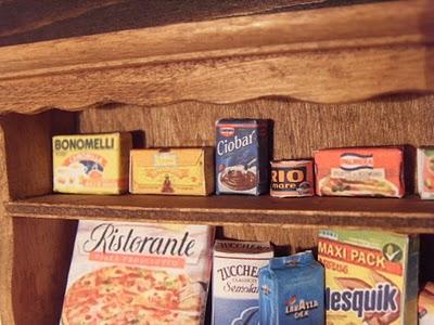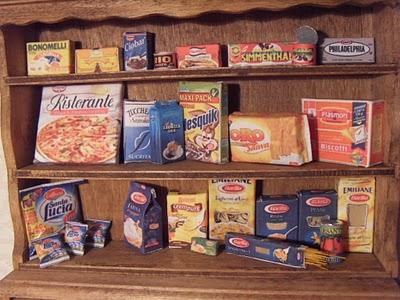 Le mie scatole di alimenti, rigorosamente "italiani", che mi hanno tenuta impegnata in questi ultimi giorni, per la ricerca dei printables in rete, ma anche nel supermercato.... sì, perchè alcune di esse ho dovuto comprarle in scala 1:1, e poi riprodurle in miniatura! Ma quanto mi costa, questo hobby???