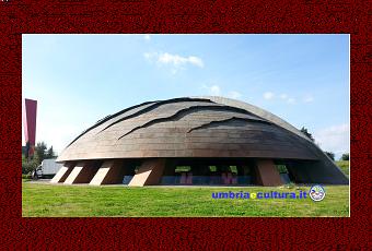 Architettonicamente è una cupola con pianta ellittica, la cui copertura, realizzata con lastre di rame, presenta delle fenditure irregolari che evocano le crepe ed i solchi nella terra.