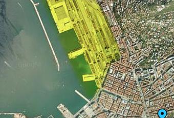 Evidenziata in giallo, l'area del Porto Vecchio di Trieste