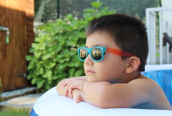5) Proteggiamo i loro bellissimi occhioni con occhiali da sole adatti: la radiazione UV può causare danno nel lungo termine ai tessuti correlati all’occhio e pertanto necessita di prevenzione.Occhiali da sole schermanti, con protezione dai raggi UVA/B, sono essenziali, specialmente per i bambini.Le lenti dovrebbero bloccare almeno il 99% dei raggi UVA/B e soddisfare tutti gli standard locali di protezione.