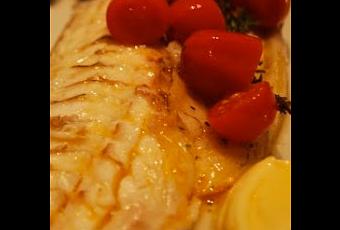 Servite il pesce con i pomodorini e condite con parte del sugo di cottura. Se volete accompagnate con maionese e patate arrosto.
