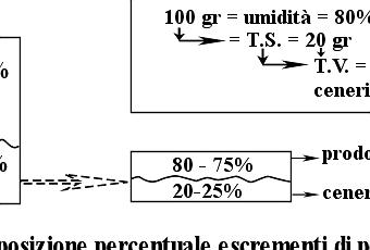 Ad esempio gli escrementi di pollo forniscono la seguente composizione percentuale di escrementi: