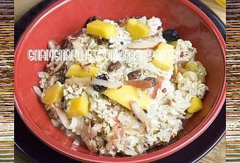 Quando preparate questo cibo, non aumentate la dose di fiocchi di avena pensando che diventi piu’ nutriente. E’ la frutta a dare al “Muesli” il suo valore essenziale. Le poche calorie necessarie all’inizio della giornata sono fornite dall’avena, dalla crema e dal miele.