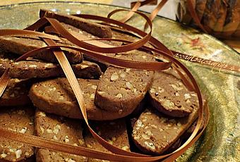 Mescolate in una ciotola farina e zucchero: unite un pizzico di cannella, il cacao, le mandorle intere, un cucchiaino di pepe. Miscelate gli ingredienti aggiungendo la poca acqua necessaria ad ottenere un amamlgama omogeneo e duttile che fare riposare per un'oretta. Acceso il forno regolate la temeperatura a 180° C. Lavorate ancora brevemente l'impasto e dategli al forma di un panetto, largo circa 15 cm, che deporrete su una teglia imburrata, introducendolo in forno per 15 minuti. estrattolo, tagliatelo a fette spesse circa 1 cm che distribuirete nella teglia, rimettendola in forno per altri 15 minuti.