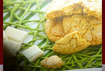 una versione un po' diversa dai soliti biscotti al cocco fatti con pistacchi e cioccolato bianco