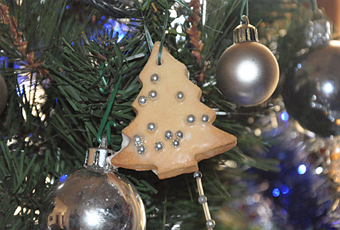 Se volete potete usare anche cioccolato fondente fatto sciogliere a bagnomaria e spennelato sopra al biscotto. Ricordate di legare i nastrini ai vostri biscotti e legateli all’Albero di Natale ( prima avvolgeteli in plastica trasparente, saranno più igenici e potrete lasciarli appesi più giorni…Almeno fino a quando non finiranno