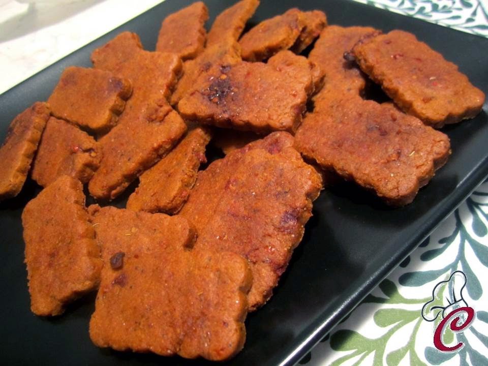 Certamente sono ricchi di sapore, intensi e audaci.Il peperoncino si fa sentire, ma il sapore del pomodore, unito a quello dell'origano, rendono questi biscottini un vero tripudio di mediterraneità ^_^