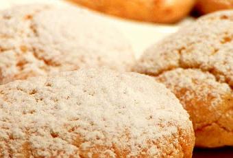 in polvere - cannella macinata - sale - 1/2 cucchiaino di aroma di mandorla amaraPREPARAZIONE Tritare finemente le mandorle. Con le fruste elettriche montare l'uovo con lo zucchero. Poi aggiungere le mandorle,1/4 cucchiaino di cannella macinata, la buccia di limone grattugiata, l'essenza di mandorla, la vaniglia e il sale. Impastare, fare una palla, coprire con pellicola e lasciar riposare per un quarto d'ora in frigorifero. Con le mani leggermente unte di olio (delicato), fare delle palline grandi quanto una noce. Appiattirle leggermente e metterle su una teglia ricoperta con carta forno. Cuocere in forno caldo a 180°C per una circa 15-20 minuti. Raffreddarli su una gratella e spolverarli di zucchero a velo.