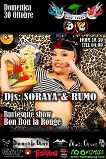 Blackcherry Night, nato da un’idea di Soraya e Rumo, con la collaborazione di Black Circus, rappresenta un viaggio che parte dai mitici anni '50 per rivivere l'era delle Cadillac, riscoprire i juke-box, il piacere dei balli lenti, l’energia del rockabilly, la sensualità delle pin up.