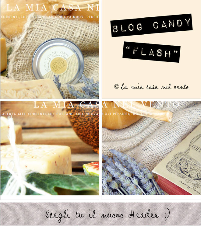 Potete lasciare UN solo commento.♥ Non è obbligatorio essere tra i miei followers , ma mi farebbe molto felice , sempre che il blog vi piaccia almeno un pò :P♥ L'header maggiormente votato, sarà ufficialmente il nuovo header de "La mia casa nel vento ", per tutta la stagione autunnale ;)♥ Tra tutti i partecipanti , tramite Random.org , verrà estratto e proclamato un solo vincitore . Se quest'ultimo non confermerà entro una settimana, proseguirò estraendo un'altro vincitore.Questo Candy "Flash" , termina Martedì 18 Ottobre a mezzanotte ! Good Luck !!!