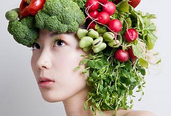 L'artista giapponese Takaya ha creato questi hair designs con l'aggiunta di verdure crude, fiori e piante... per capelli in stile Green.