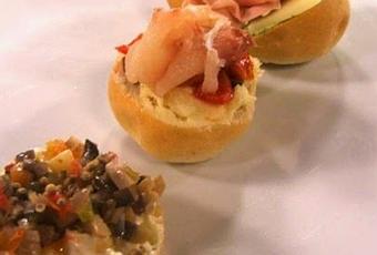 - Farcirne metà lasciandoli tagliati come fosse una tartina con la crema di sedano, aggiungendo la tartare di pomodorini e olive, e adagiando sopra le fettine di carpaccio di pesce spada, sulle altre metà stendere la maionese di soia, un cucchiaino di ratatouille di verdure e un pizzico di senape in grani.