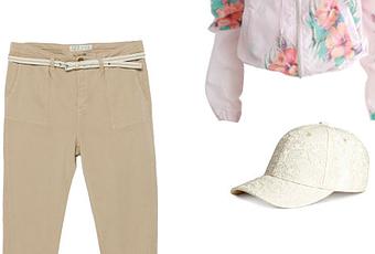 Care amiche buon lunedì……..non so voi ma io questo weekend mi sono ricaricata. Cosa ho fatto? Sabato sera sono andata con la mia dolce metà al cinema a vedere il fantastico film “Fast & Furious 7″ (grazie nonni che siete venuti a trovarci) poi domenica ho trascorso una bellissima giornata al mare con la mia famiglia. Relax, profumo di salsedine, sole e tanti giochi con le mie principesse……..non è un buon metodo per ricaricarsi? Voi cosa avete fatto di bello? Visto che sono stata al mare oggi voglio proporvi un look perfetto per una passeggiata al mare, un look dove, visto il sole ma l’aria ancora un po’ frizzantina, puoi permetterti di indossare capi leggeri, colorati e comodi, comodi come i pantaloni color cammello, trovati da Zara, semplici e lineari con risvolto, e il bomber modello Tahiti con stampa floreale su base rosa. Continuando sulla tonalità del rosa, la clutch semirigida con tracolla, e le immancabili Slip-on in rettile rosa con inserti in glitter e in pelle di vitello oro. Ultimo accessorio sempre utile al mare, un berretto in tessuto stile broccato.