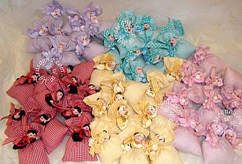 i sacchettini sono tutti cuciti a mano con fiocchetto abbinato alla bimba della natura!