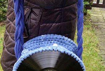 Ho forato il bordo di entrambi i dischi con il trapano e ho lavorato all'uncinetto, direttamente nei fori, una fettuccia ricavata da una coperta di pile.