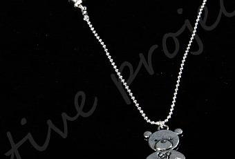 In questo caso la catenella è una micro-ball, con chiusura ovale a vite argentata. Il cindolo è un orsacchiotto che ricorda i peluches dei bambini, ricco di dettagli pur nelle sue ridotte dimensioni.