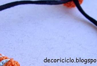 In questo caso si alternano a due file di rondelle di cotone arancioni e verde acqua, infilate in un semplice cordino nero. Le rondelle sono come quelle della collana di sughero, legno e cotone che ho mostrato nel post di giovedì scorso.