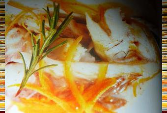 rompete la crosta del branzino e sfilettatelo servendolo con l'olio al mandarino