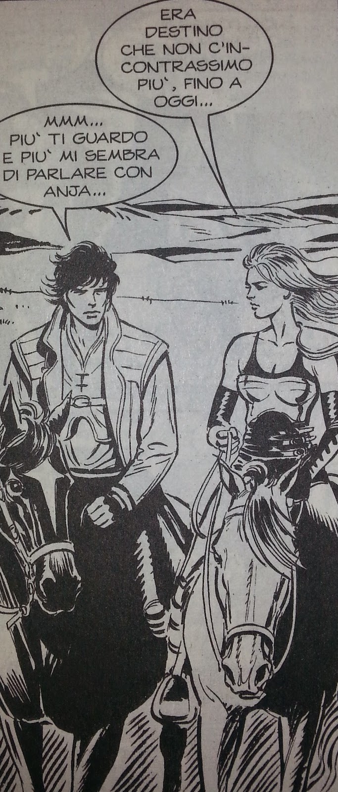 Successivamente il cavaliere di ventura va a trovare il folle Es (se non è uno speaking name geniale questo, ditemi un po’ voi!! Immenso Claudio!) che lo rende invisibile alla percezione di Zeder e gli permette di mettere in pratica il suo piano. Raggiunge la zona industriale, teatro dei fatti evocati dal padre di Brendon nel glorioso albo Destino di sangue (n. 58 del dicembre 2007, disegnato magistralmente dal talento di Gianluca Acciarino), per scoprire che cosa si intendesse nel volume The Black Moon Chronicles con le parole «…se il Serpente Nerorisorgerà, non potrà essere sconfitto da nulla. La sua unica possibile fine è celata nel suo stesso inizio».La tenera Leenha, in lacrime dopo aver salutato Brendon