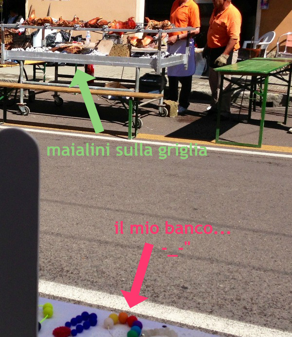 Inoltre, nonostante il tempo sia stato pressoché sempre sereno, al momento di montare il tutto l'armamentario pioveva... indi per cui alle 9.00 ero già distrutta. Per concludere, ciliegina sulla torta, ci hanno posizionato davanti a una mega griglia che è stata accesa non-stop tutto il giorno...