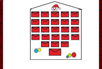 E' molto semplice: si prendono delle bustine da lettera rosse molto piccole e si attaccano su un cartone bianco, si numerano dall'1 al 24. Poi decoriamo il nostro calendario con disegni natalizi, magari a decoupage, si mette poi per ogni busta un cioccolatino o qualcosa da fare (un disegno da colorare, ecc).