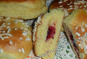 Le brioche veneziane mi ricordano la mia infanzia, quando non c'era l'assortimento di dolci che c'è oggi. Quando entravo nella pasticceria, assaporavo la magia del posto, restavo inebriata dal profumo e poi finalmente gustavo la brioche a piccoli morsi per evitare che finisse troppo in fretta. Ho voluto provare a realizzare le veneziane e devo riconoscere che il risultato è stato soddisfacente...anche se manca la magia dei tempi passati....Ingredienti550 g di farina "Alta Pasticceria" di Molini Pizzuti100 g di burro morbido100 g di zucchero1 cubetto di lievito200 g di latte3 tuorliscorza di limone1 pizzico di sale***granella di zucchero1 vasetto di marmellata "Natura e tradizione" della Vis ai frutti di bosco
