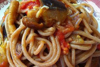 - Cuocete i bucatini in acqua salata, scolateli e conditeli con il sugo preparato ed il parmigiano grattugiato.