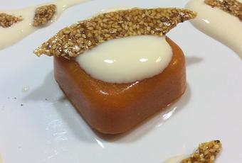 “budino” di albicocche con croccante al sesamo