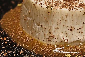 Leggerissima, a base di yogurt magro, da impreziosire con una salsa al caramello salato, una spolverata di cioccolato di Modica e, tocco finale ... l'oro.