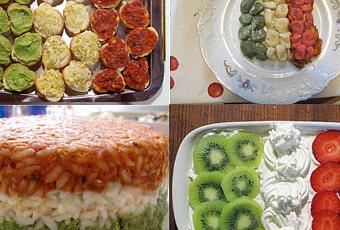 Anche il più convinto dei seccessionisti sarà d’accordo su un fatto: se c’è una cosa che ci unisce davvero è il mangiar bene. Dal Nord al Sud Italia infatti non c’è un solo angolo del Paese che non vanti un appetitoso piatto o una gustosa ricetta della tradizione locale, piatti e ricette che ci fanno essere (almeno in quello) orgogliosi di essere italiani. Uno dei modi migliori per festeggiare il 150° anniversario dell’unità d’Italia (e sentirsi un po’ più uniti) potrebbe essere allora quello di sedersi a tavola e gustare un menu realizzato con i prodotti del nostro Paese e con i colori della nostra bandiera. Come spunto potete partire dalle ricette che trovate di seguito, ricette a forte “vocazione vegetale” (come ci si attende da un blog come questo) e caratterizzate dall’ispirazione al Tricolore. Ehi, non aspettatevi niente di particolare: il cuoco, cioè il sottoscritto, è poco più di un dilettante allo sbaraglio ed è in grado di fare solo cose di una semplicità disarmante ma che spera che venga colto lo spirito del tentativo che è animato dal sincero amore per questo assurdo quanto meraviglioso Paese.