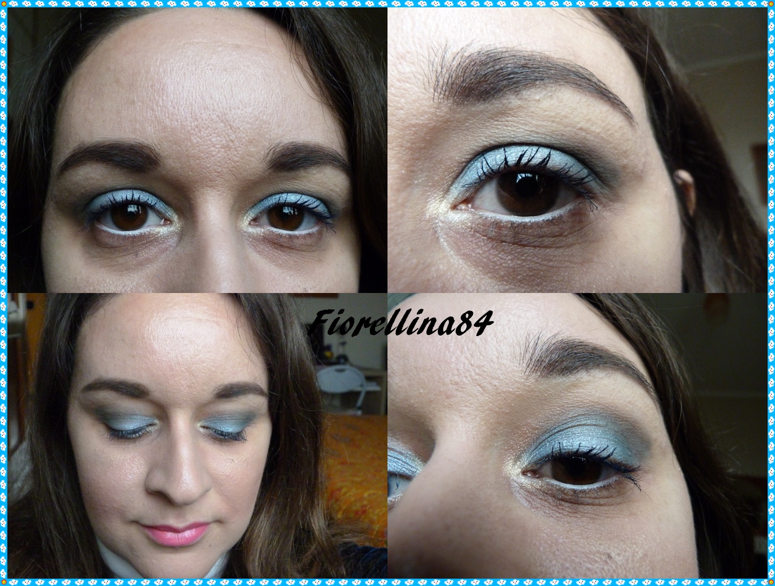 Come primo passo io vado a fare la mia base che di solito è: prima il fondotinta, poi il correttore, cipria, sistemo le sopracciglia e faccio anche il contouring ma non troppo perchè non son brava!! .Dopo applico la mia base per l'ombretto, che in questo periodo, è la base di LASplash cosmetics (di cui vi parlerò!) e aspetto che si asciughi un pò!! Vado a fare una base colorata solo sulla palpebra mobile con il mio long lasting e lo vado a sfumare con un pennellino o con le dita. Dalla palette "Flawless Matte" di Make up revolution vado a prelevare un pò del colore "Soke" che è un azzurro scuro molto bello e lo vado ad applicare come ombra sfumandolo bene.Prendo l'ombretto singolo di Just e lo applico sulla palpebra mobile sopra alla mia base long lasting e sfumo bene i colori in modo che non ci sia stacco.All'interno dell'occhio, per dare un aspetto più sveglio alla mia faccetta, ho voluto mettere la matita bianca di Avon. Di solito non amo applicare la matita bianca ma, vi devo ammettere, che non l ho trovato troppo bruttino come effetto finale ^_*.Applico il mio mascara solo sulle ciglia superiori e poi vado ad applicare "Way" come illuminante e il colore "Nutmeg", che è un panna, sotto l'arcata sopraccigliare.Sul viso applico il blush, che sto adorando e sulle labbra applico il lipstick color rosa che trovo molto carino con questo look.Non l ho applicato benissimo però è molto carino!!!Qui sotto vi lascio alcune foto del mio make up nel dettaglio ^_*